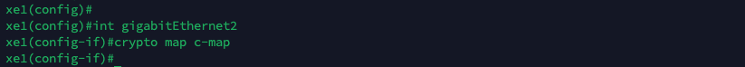 Lastly, we apply the previously defined crypto map to a the Gig2 interface on the Cisco router