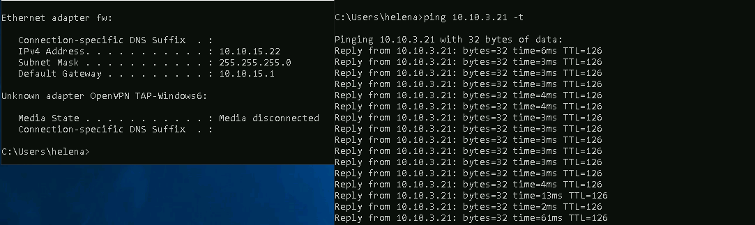 Now on the PC from the Cisco Router’s LAN network, we are able to connect to the pc on the Checkpoint’s LAN network