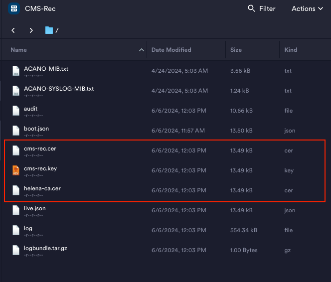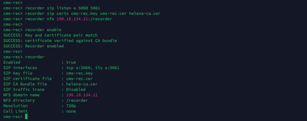 recorder sip certs cms-rec.key cms-rec.cer helena-ca.cer