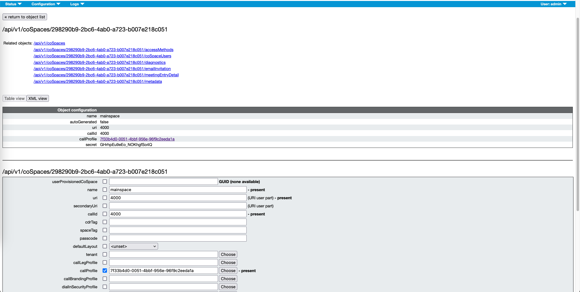 If we want a more specific configuration, we can just attach the callprofile to a specific space, like here for example on the mainspace