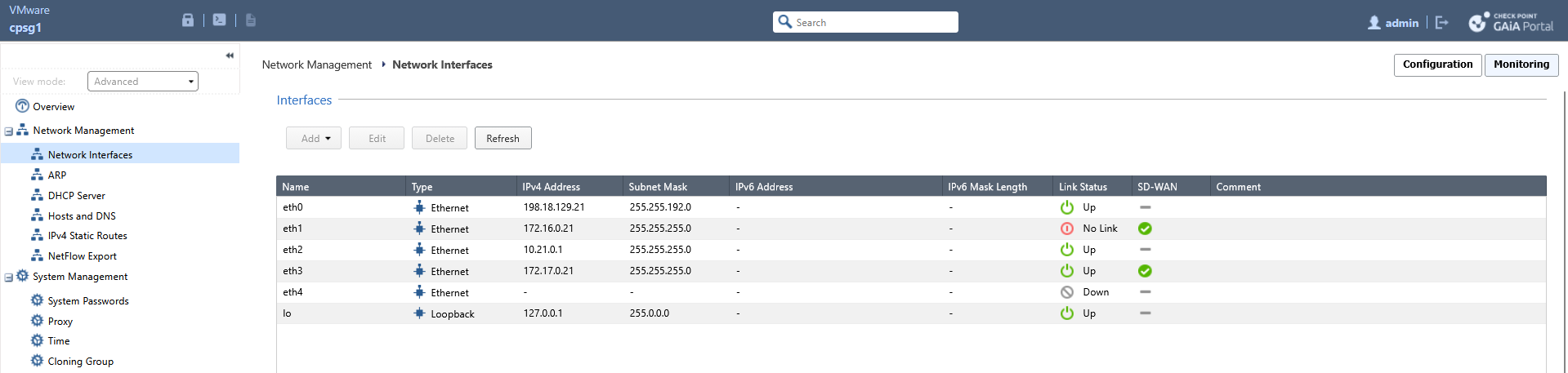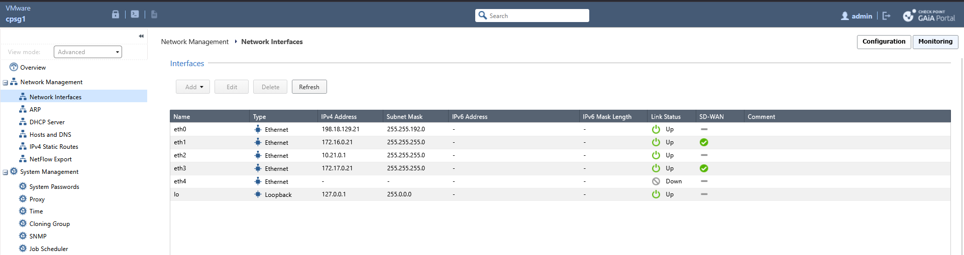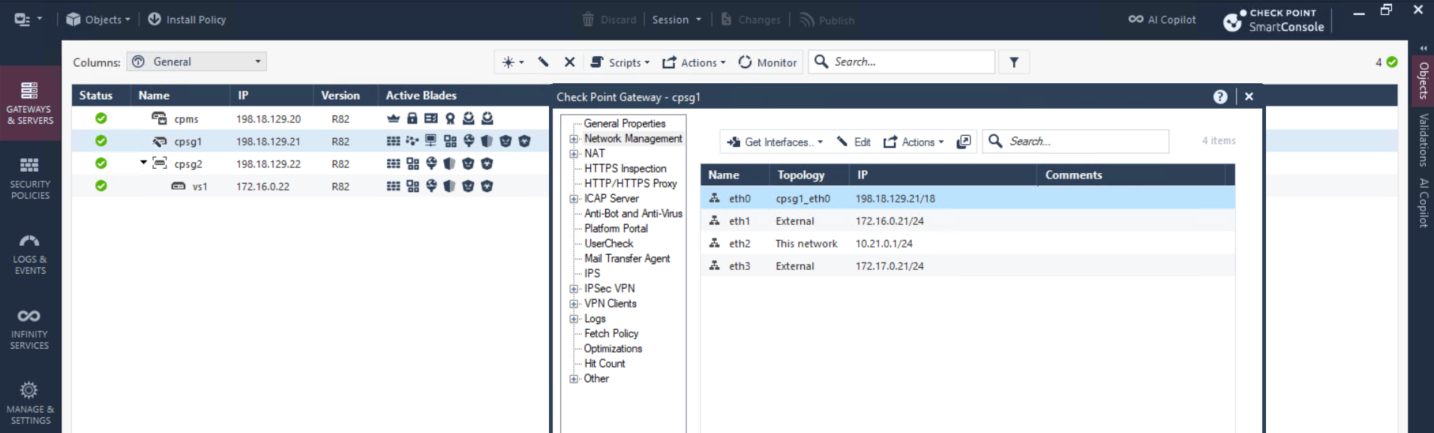 Once the changes are Published and Enforced, we can verify this on CPSG1 by running “cpview”