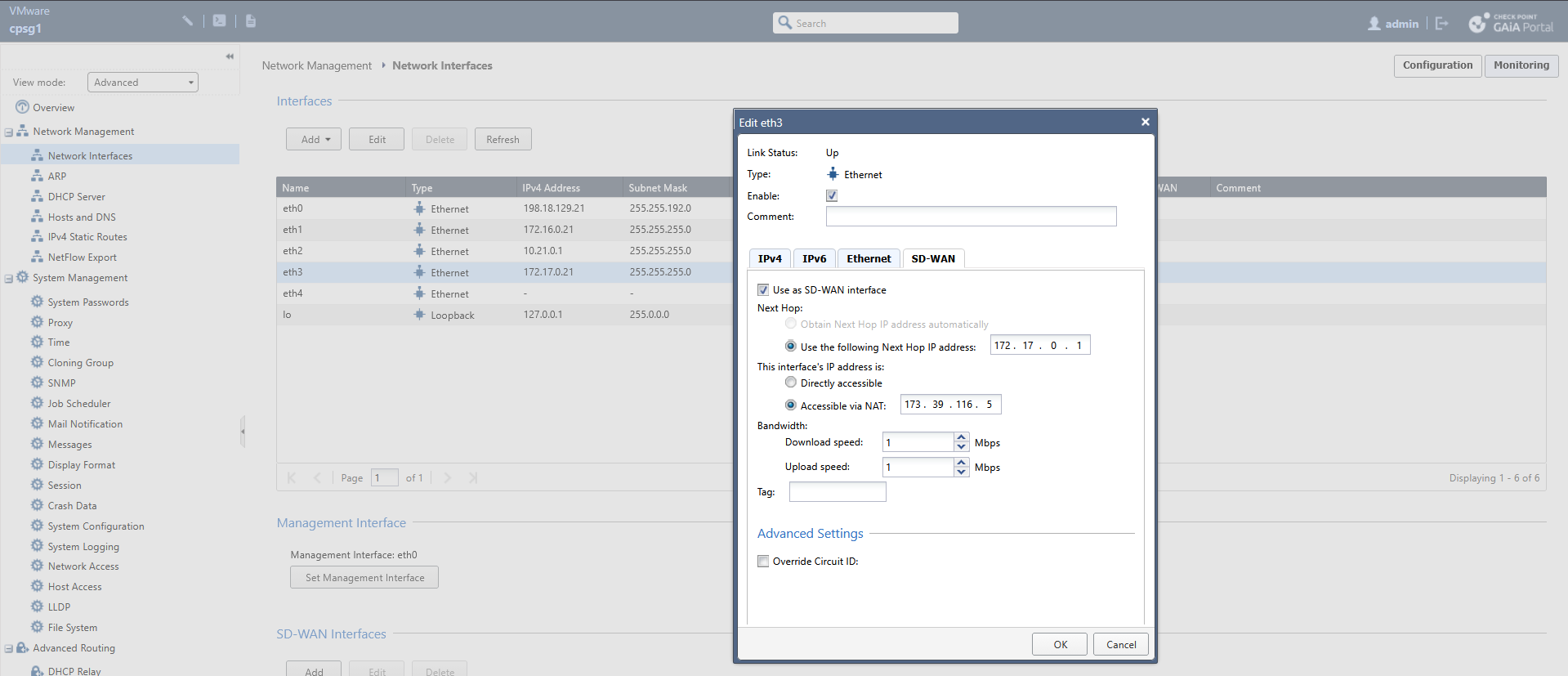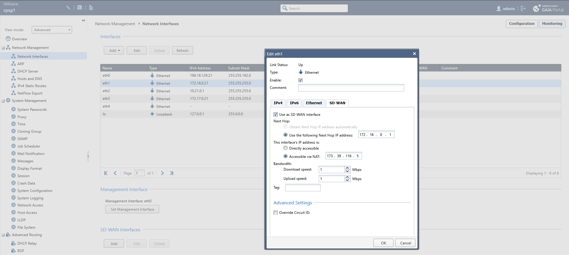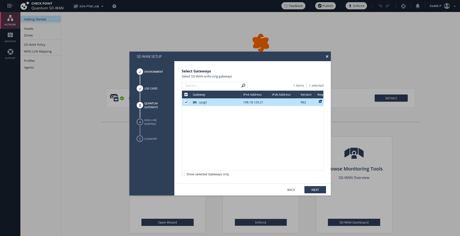 Here we have Management and Gateways that’s already connected to an Infinity Account, we plan to enable Quantum SD-WAN on CPSG1