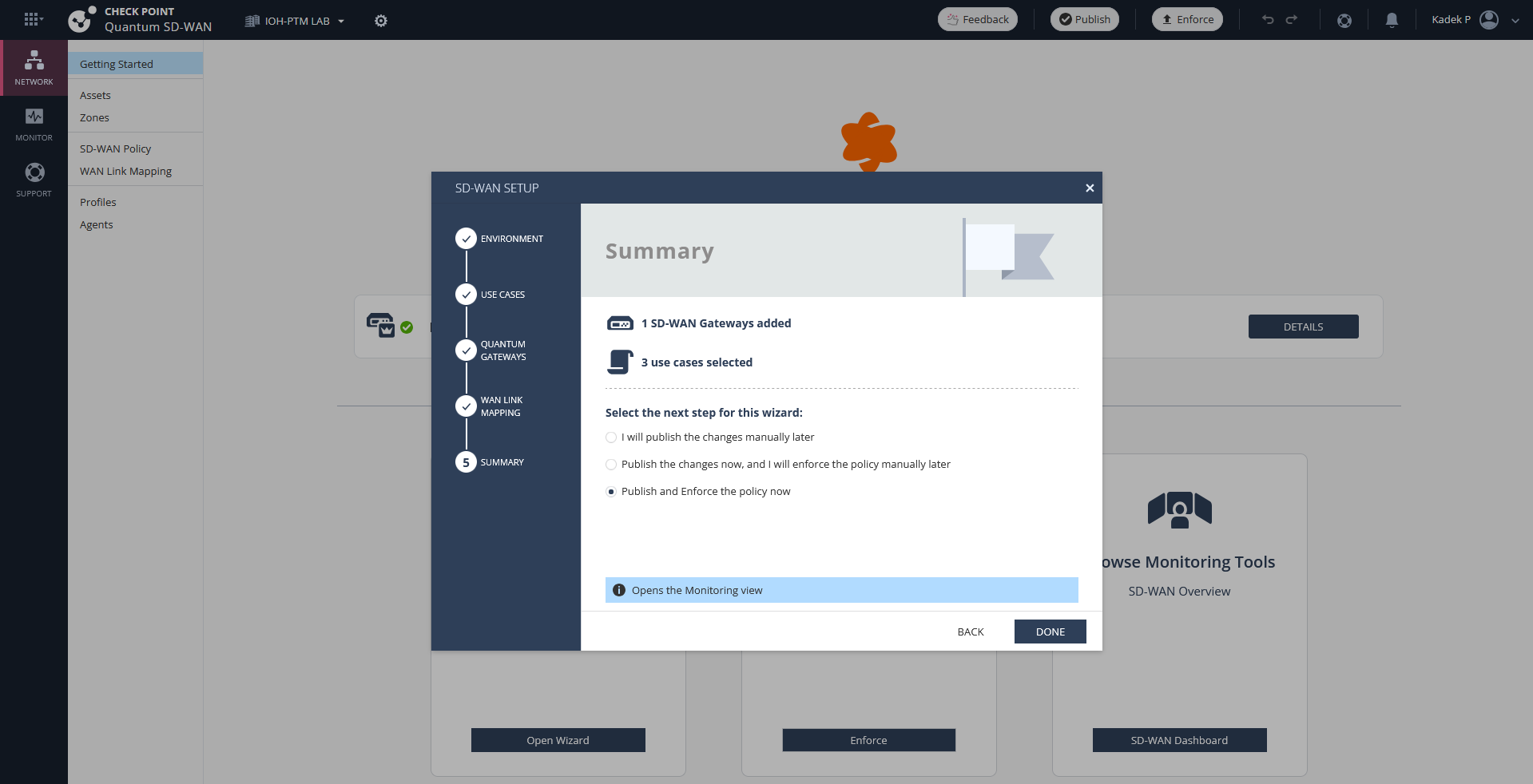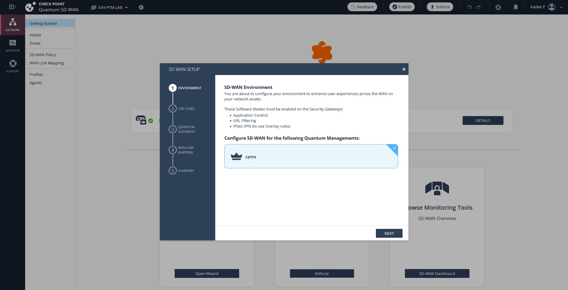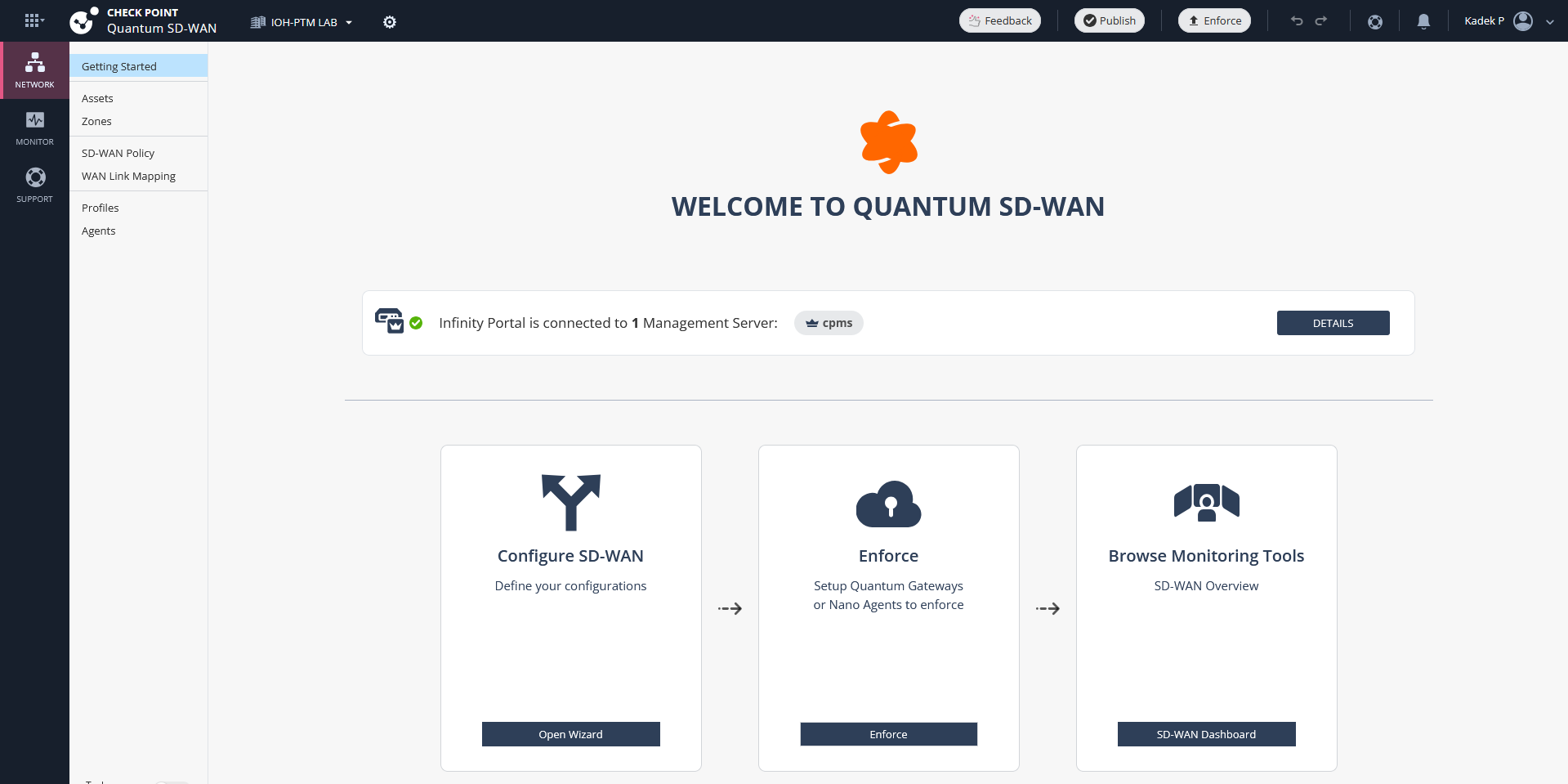 Then we go into the Quantum SD-WAN menu on Infinity Portal