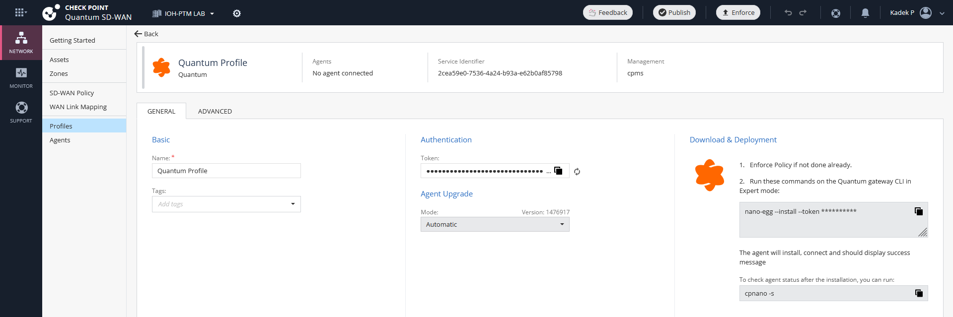 We need to enable the Nano Agent on the CPSG, to do that go to profile and select the Quantum Profile