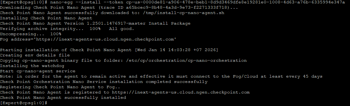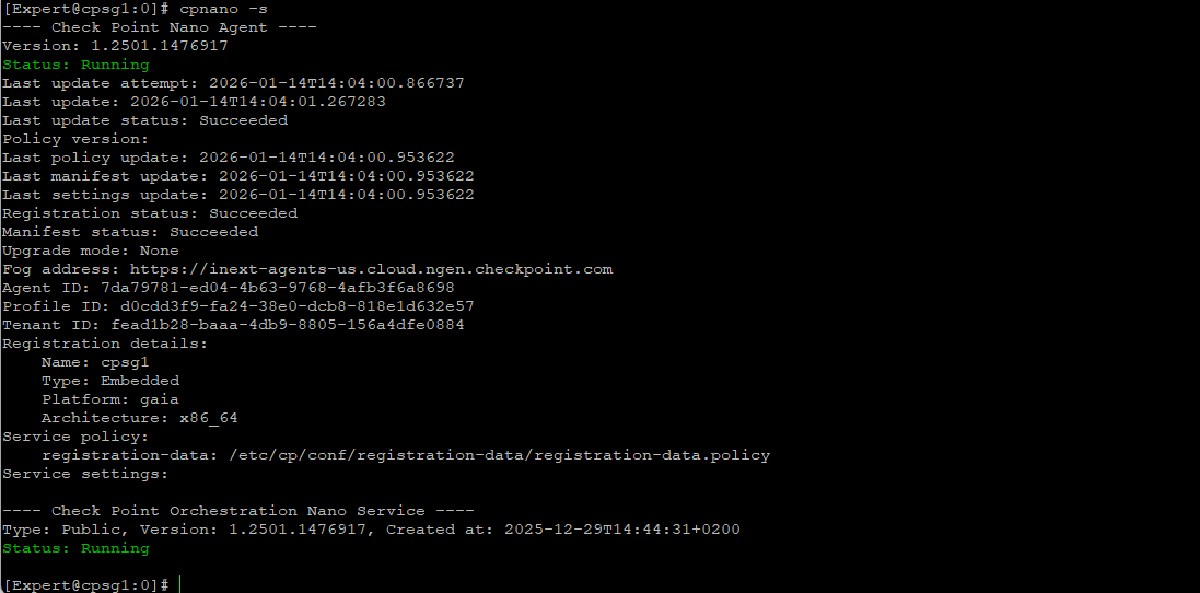 Once installation finishes, run “cpnano -s” to verify the service status