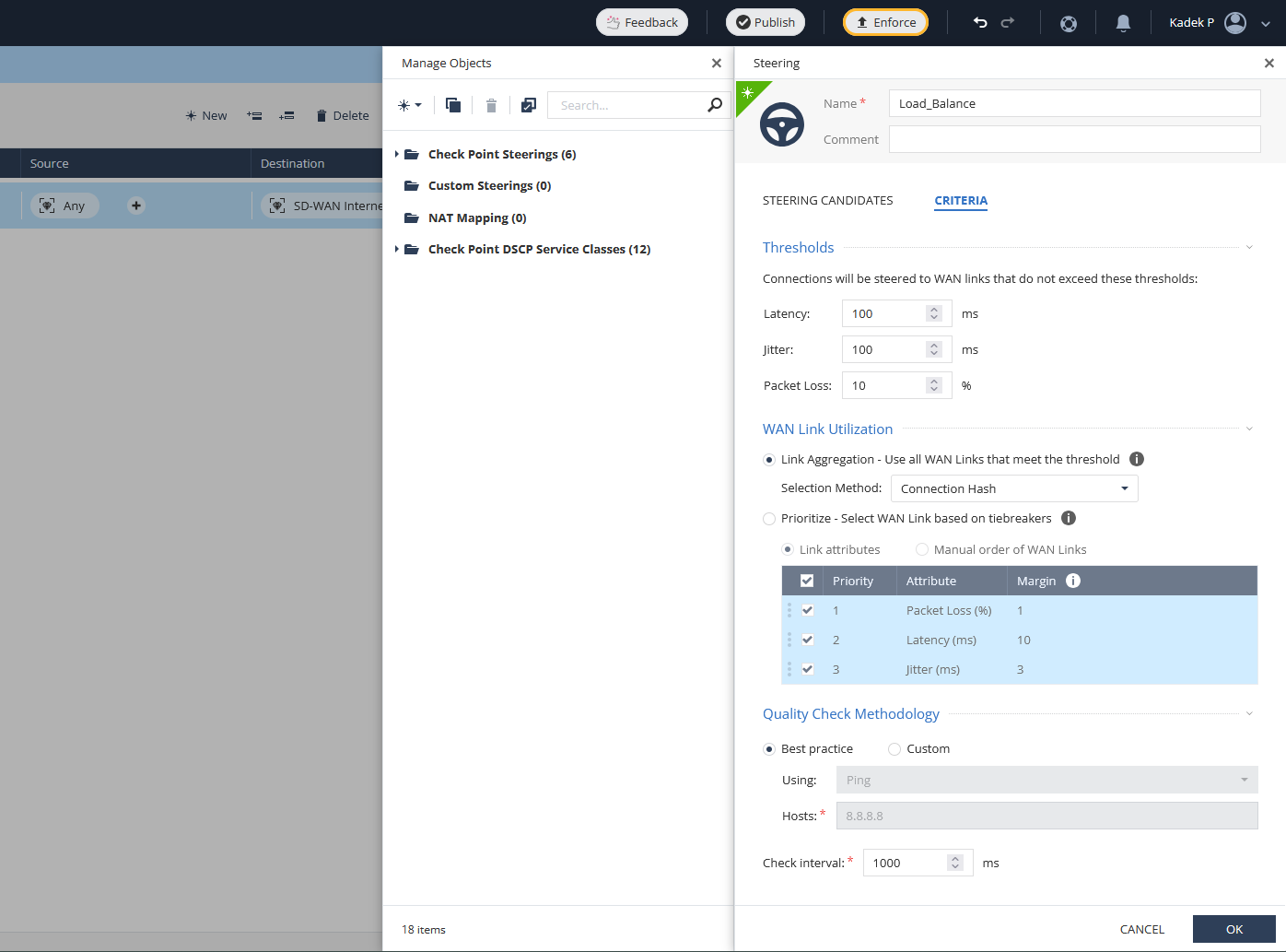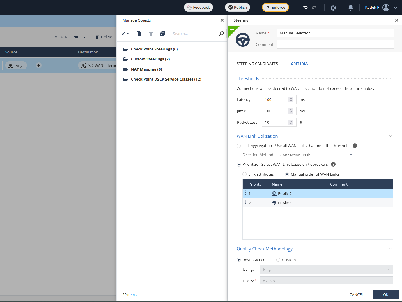 Next one is “Best Quality” steering policy, where it will dynamically select the best WAN link