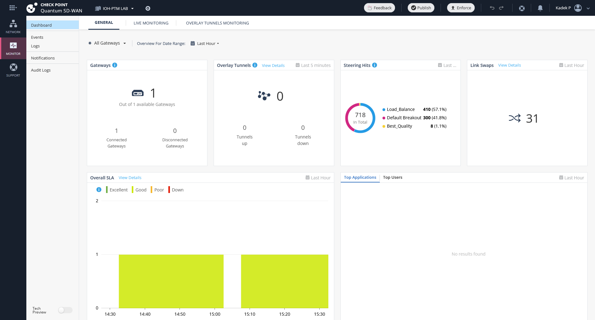 Infinity Portal also has a decent dashboard to see the overall SD-WAN performance