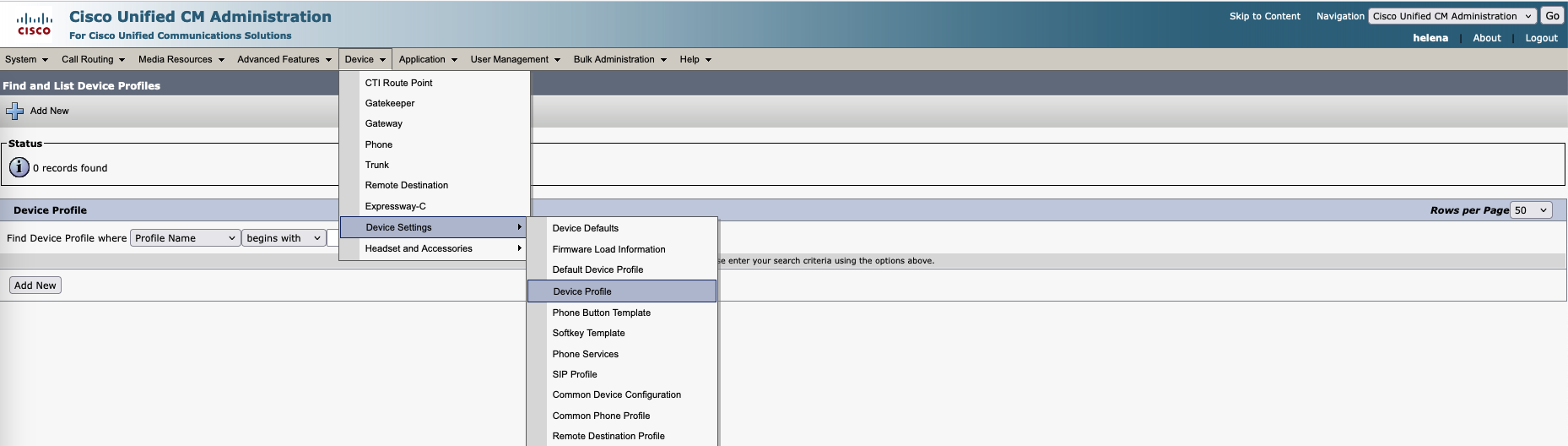 Next create the user profile on Device » Device Settings » Device Profile