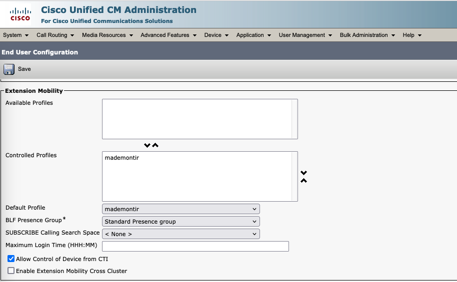 CUCM Extension Mobility