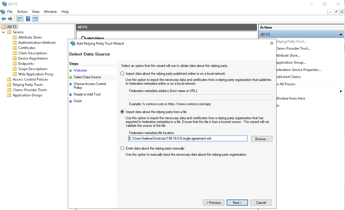 Next download the IdP Metadata Trust on https://ad.helena.gg/FederationMetadata/2007-06/FederationMetadata.xml