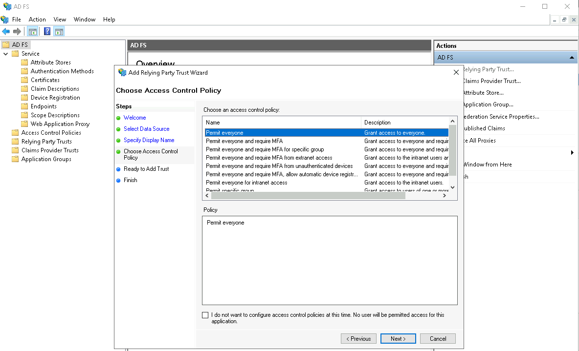Next we need to make sure to enable all browser/application agents to ADFS’s Windows Integrated Authentication (WIA).