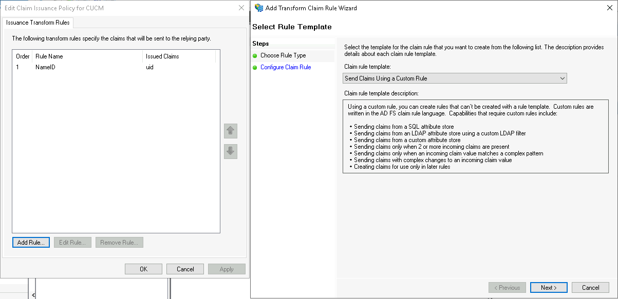 => issue(Type = "http://schemas.xmlsoap.org/ws/2005/05/identity/claims/nameidentifier", Issuer = c.Issuer, OriginalIssuer = c.OriginalIssuer, Value = c.Value, ValueType = c.ValueType,Properties["http://schemas.xmlsoap.org/ws/2005/05/identity/claimproperties/format"] = "urn:oasis:names:tc:SAML:2.0:nameid-format:transient",Properties["http://schemas.xmlsoap.org/ws/2005/05/identity/claimproperties/namequalifier"] = "http://ad.helena.gg/com/adfs/service/trust", Properties["http://schemas.xmlsoap.org/ws/2005/05/identity/claimproperties/spnamequalifier"] = "cucm.helena.gg");