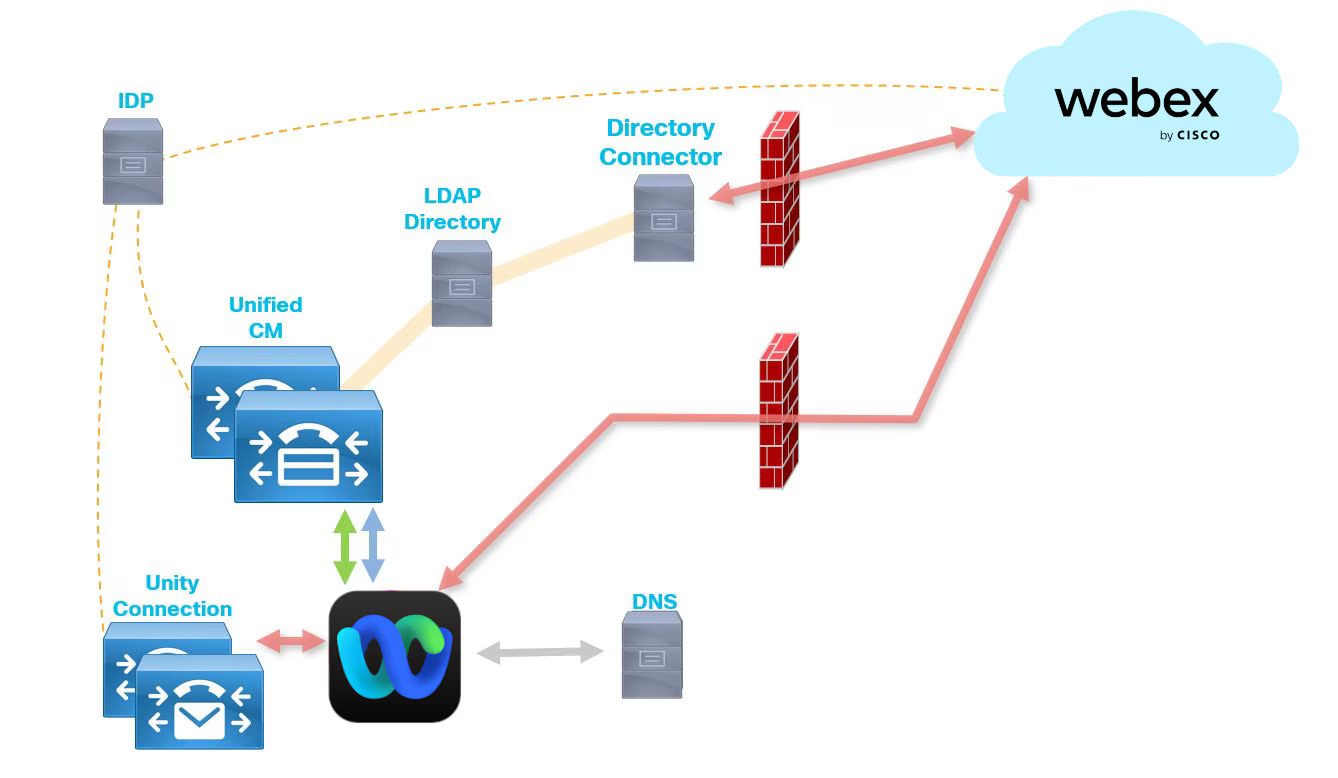 Cisco Unified Communications Manager (CUCM) Webex App Calling integrates CUCM with Webex, allowing users to make and receive calls through the Webex App while registered to On Premise CUCM and managed via the Webex Control Hub.