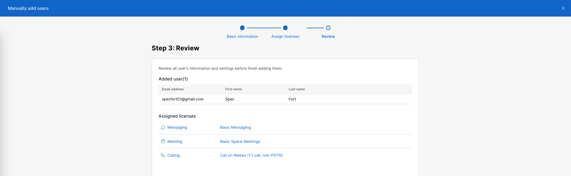 An invitation email will be sent to activate the user’s Webex Account