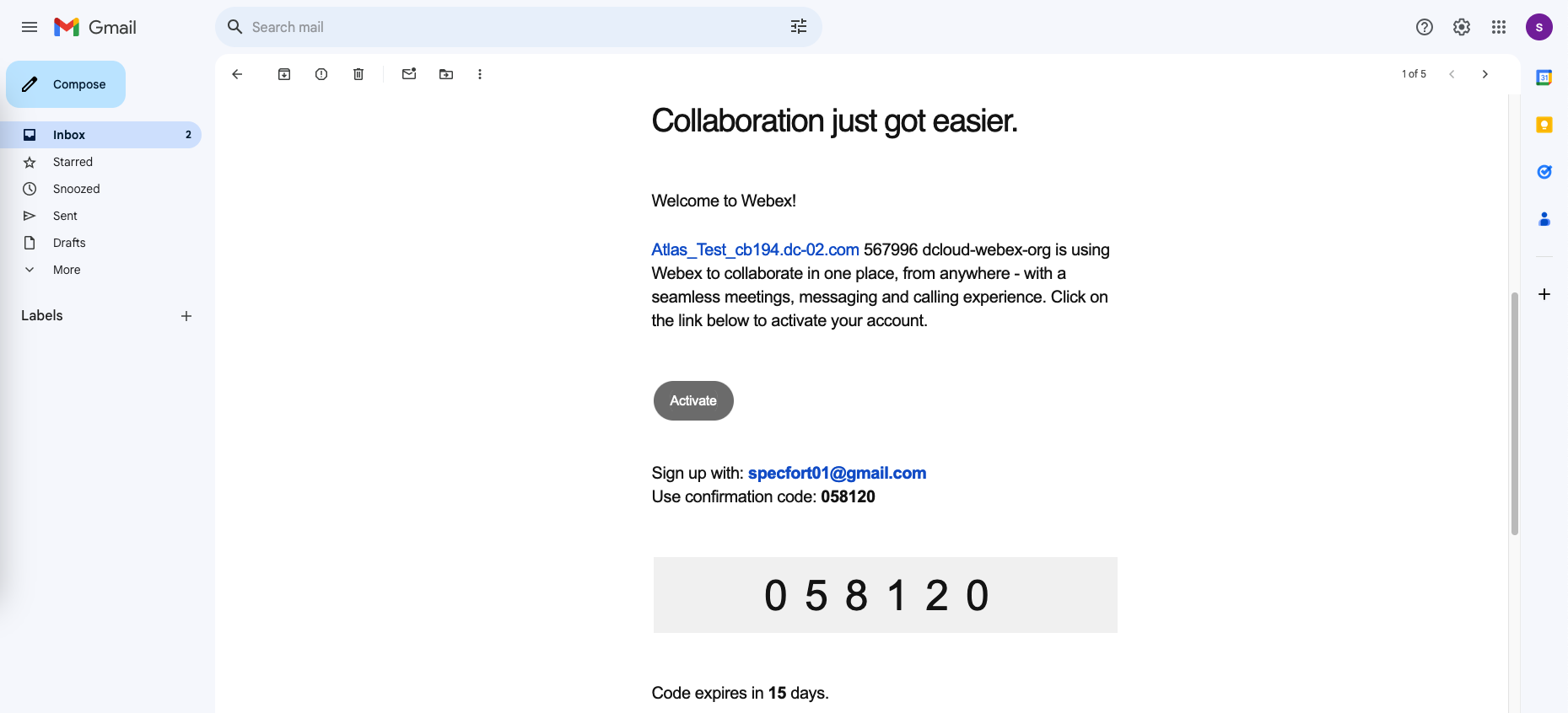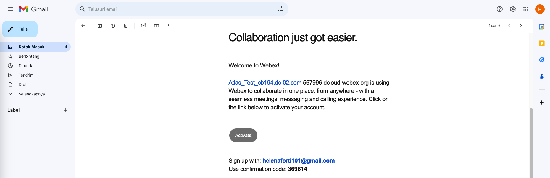 The user will receive an email to activate the Webex Account