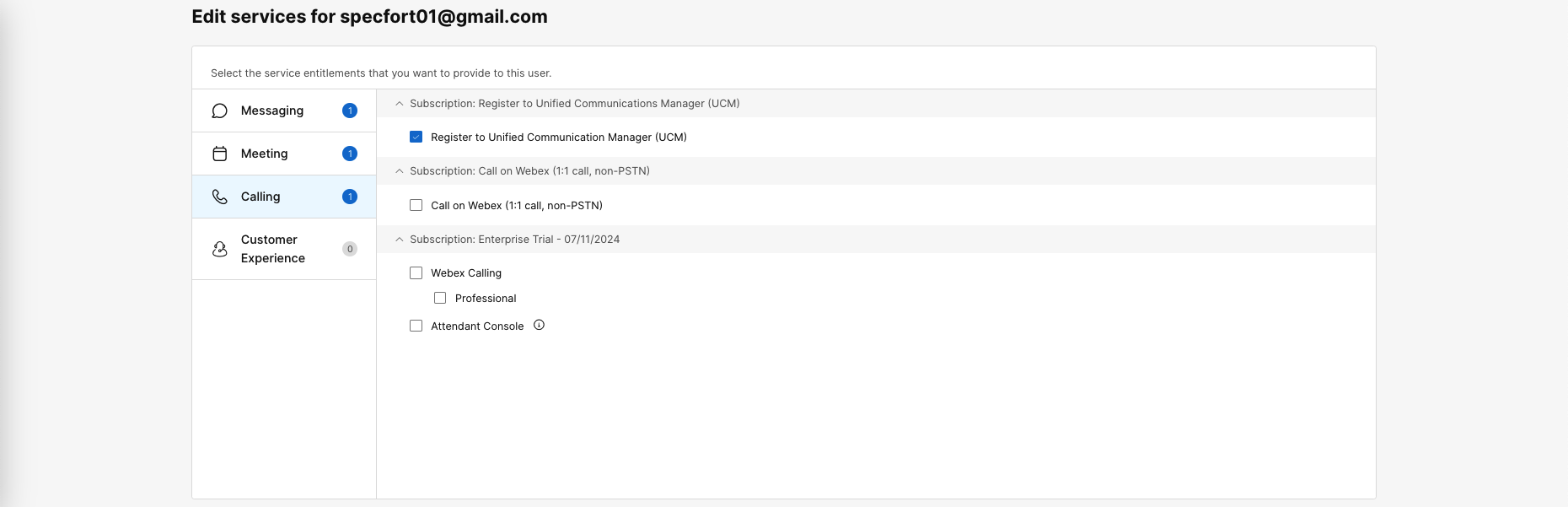 On that user » Licenses, edit the Calling License and select Register to Unified Communication Manager (UCM)