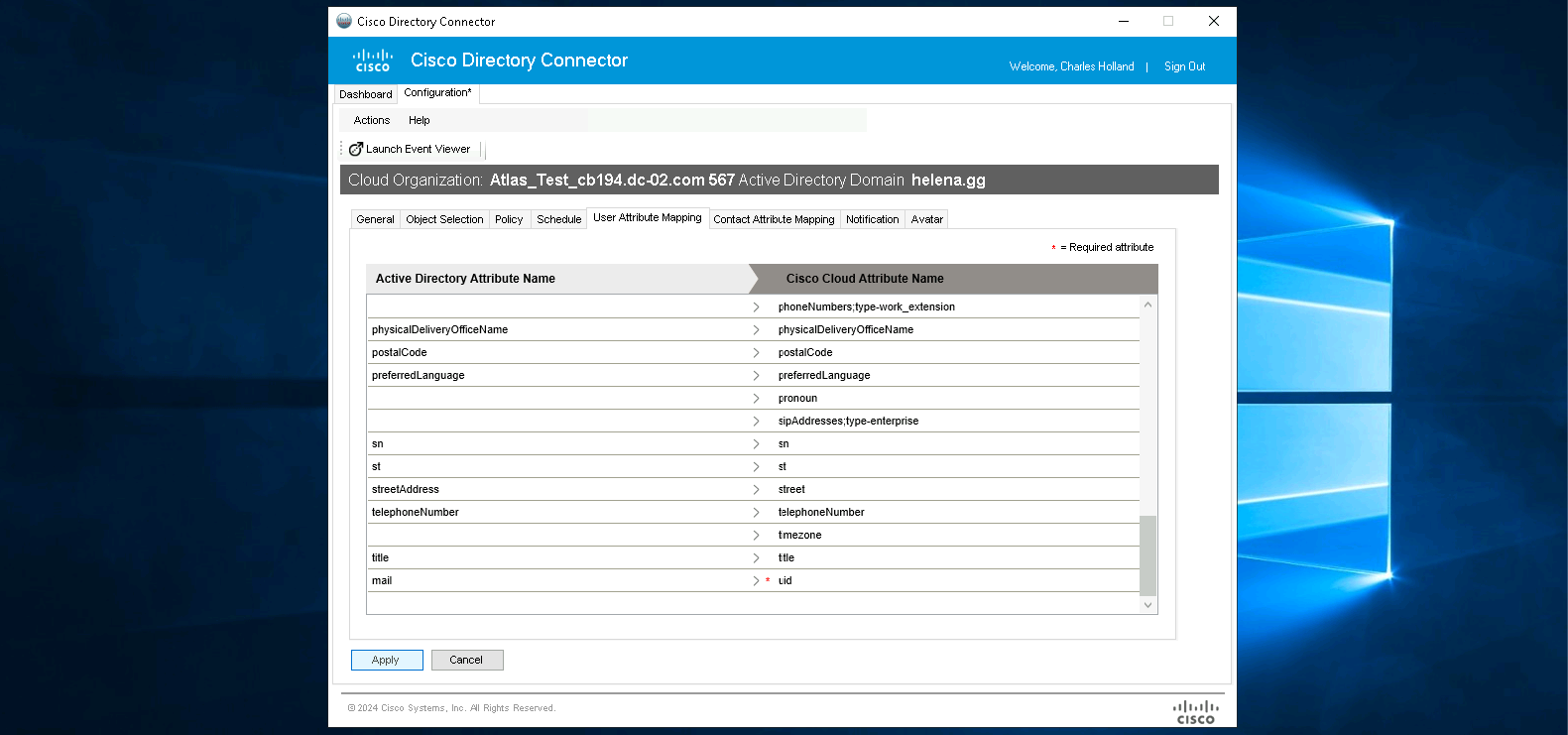 On User Attribute Mapping, the only mandatory attribute here to fill is the “UID” and here we choose to fill it with the “mail” attribute