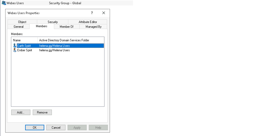 (&(sAMAccountName=*)(memberOf=CN=Webex Users,OU=Helena Users,DC=helena,DC=gg))