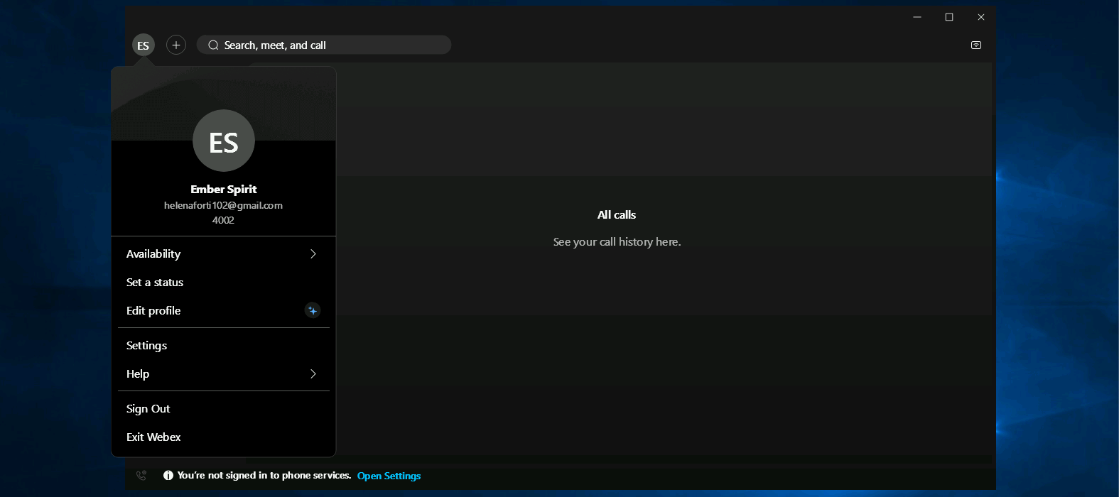 Now on the Webex App, the user will have an option to register to phone service