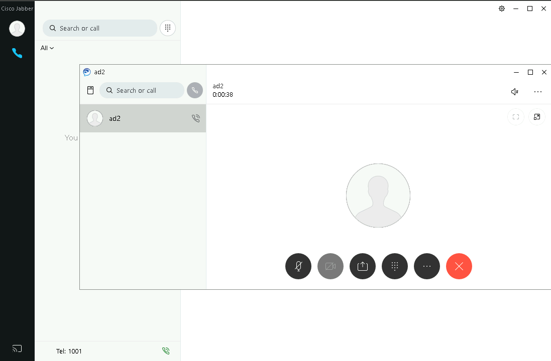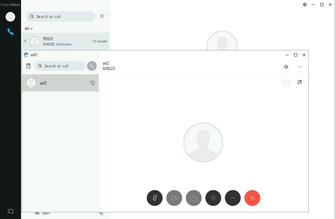 Now we try making a call from 1001 to 9002, this call should be received by the extension 1002 (user ad2)