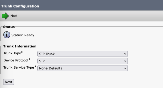 Now we configure SIP Trunk on CUCM, go to Device » Trunk » Add new » Select SIP Trunk
