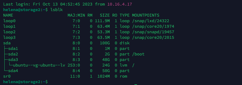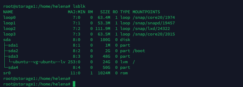 On the SDA Physical Disk, we have 100 GB of free space, we’ll create a new partition named sda4 with the size of 50 GB for DRBD