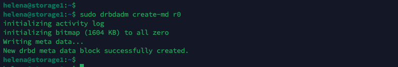 Next create the metadata for a DRBD resource named “r0”
