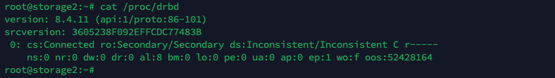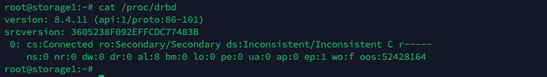 Run “cat /proc/drbd” to see the DRBD status
