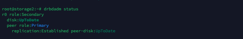We can also run ‘drbdadm status’ to see the status