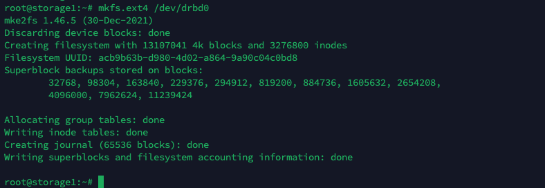 mkfs.ext4 /dev/drbd0