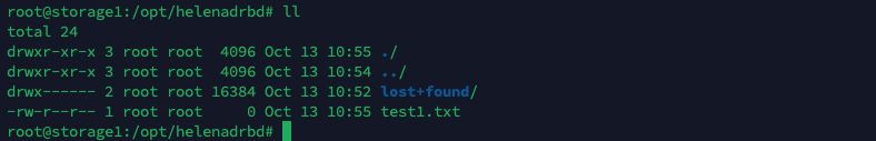 As we can see, the file inside the device is replicated and still show up intact on the second node.