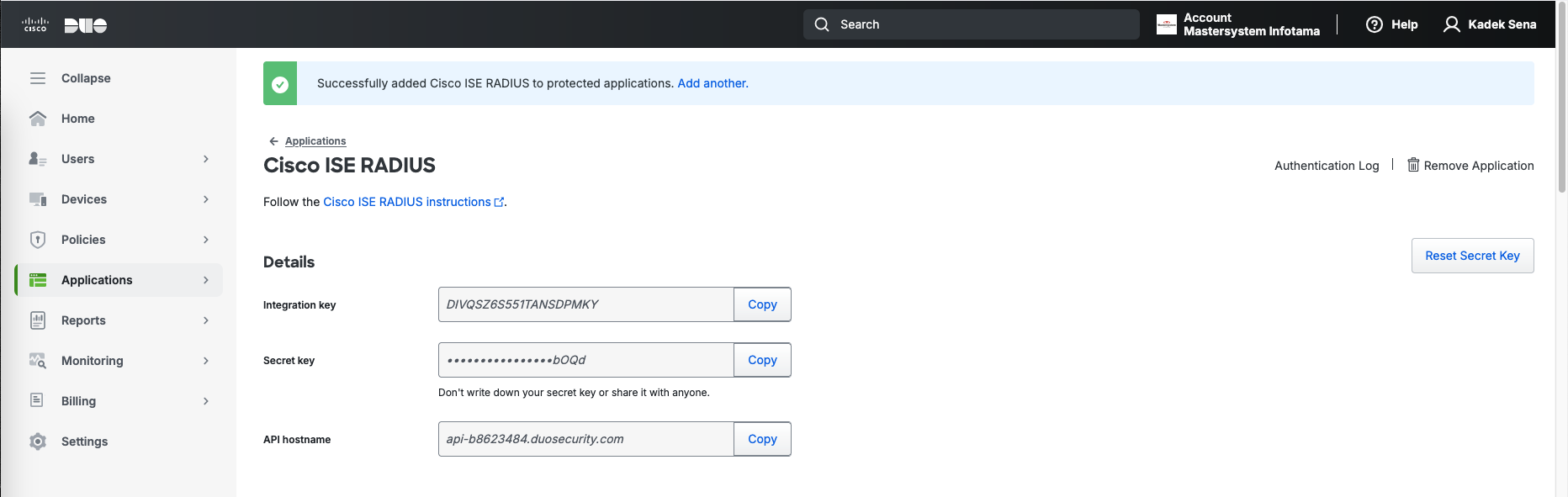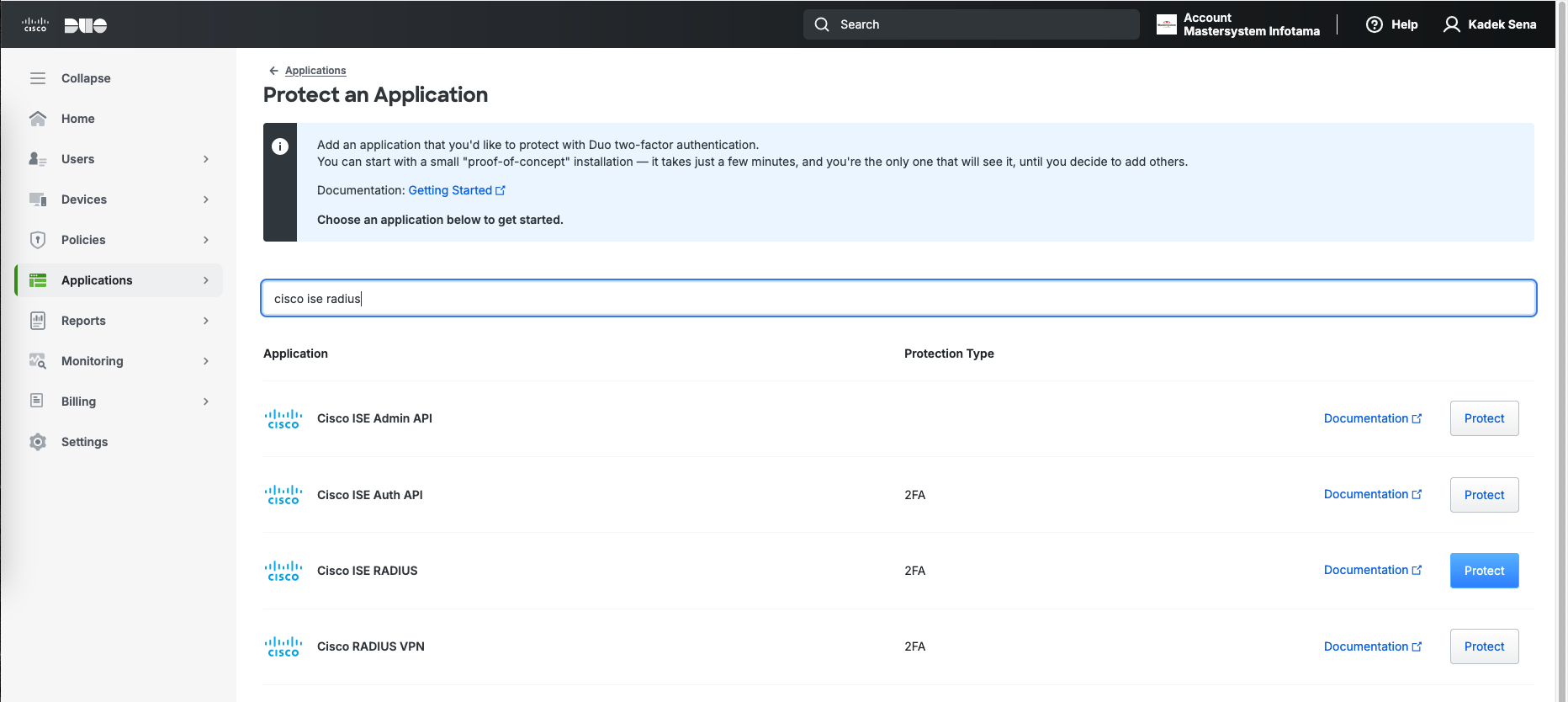 Then we add another Application to protect named “Cisco ISE Radius”