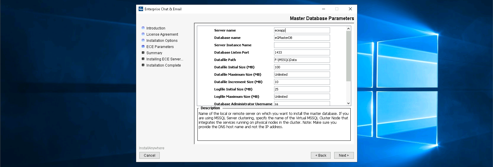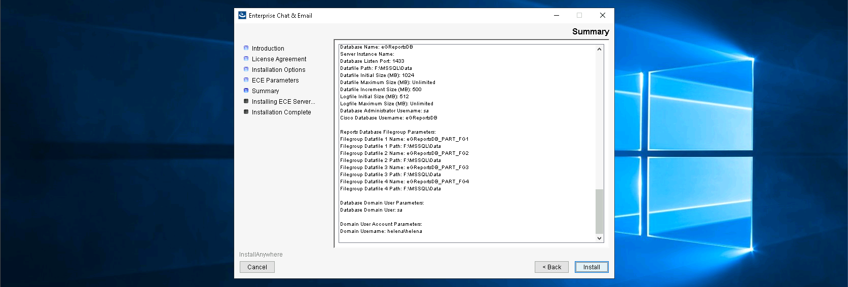 Installation on ECE Data Server