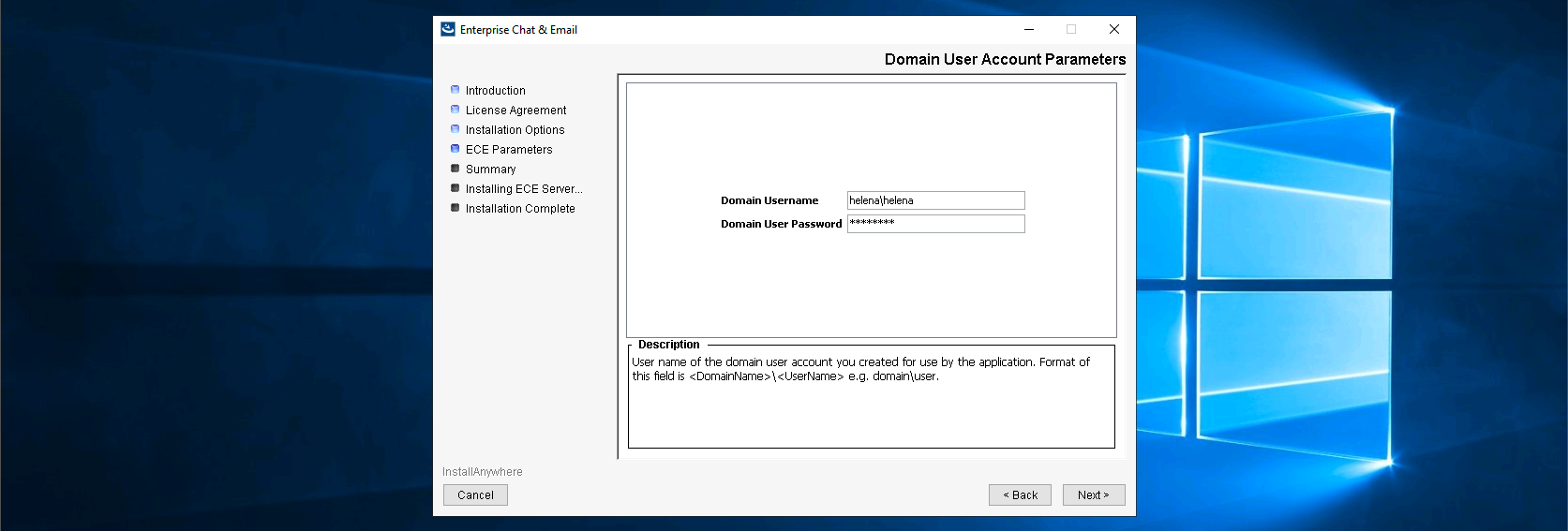 And provide the domain user
