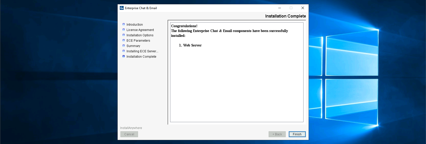 After a minute the Web Service should be installed on ECE Web Server
