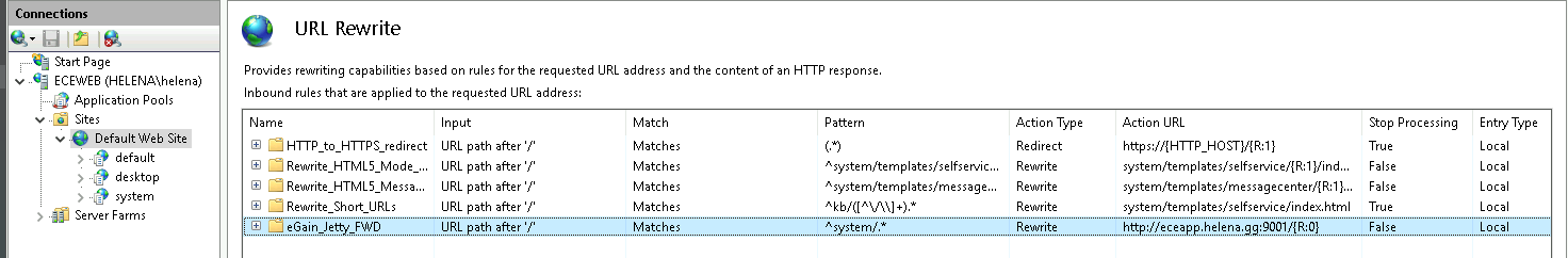 Here make sure the URL Rewrite is pointing to the ECE Data Server