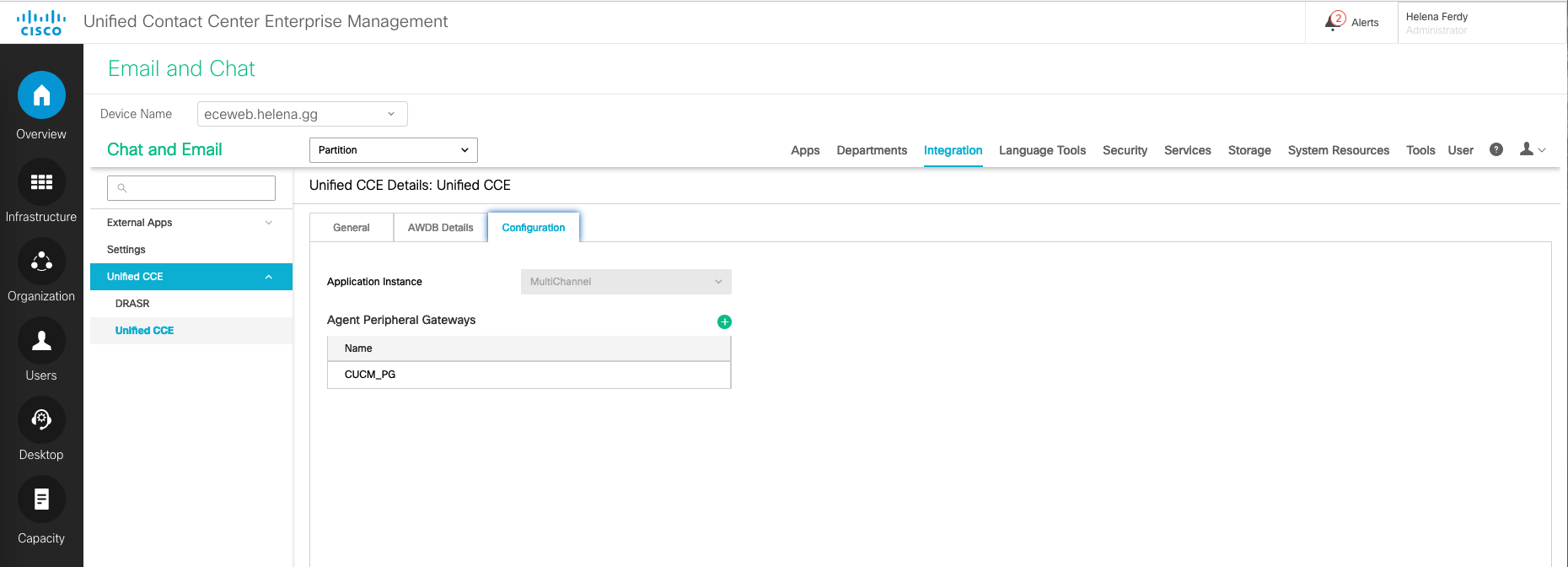 Back on CCE Admin, select the Instance “Multichannel” and select CUCM Agent Peripheral Gateway