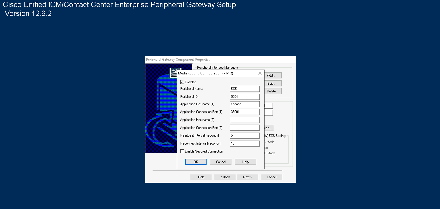 Add a new PIM (Peripheral Interface Manager) pointing to ECE Data Server on default port 38001 and the Periperhal ID 5004