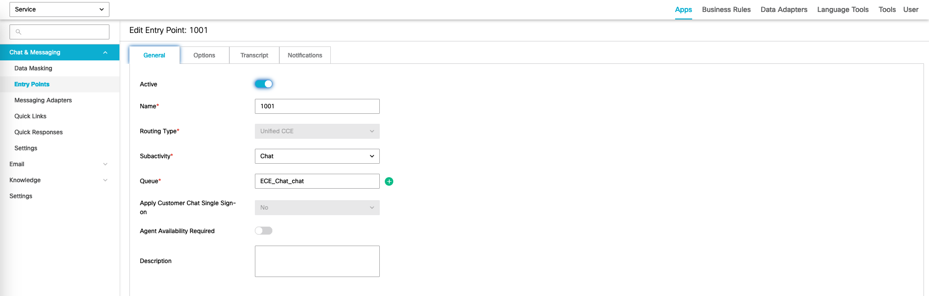 Now we’ll configure so ECE can handle chats, create a new Call Type and Dialed Number with Routing Type of ECE Data Server