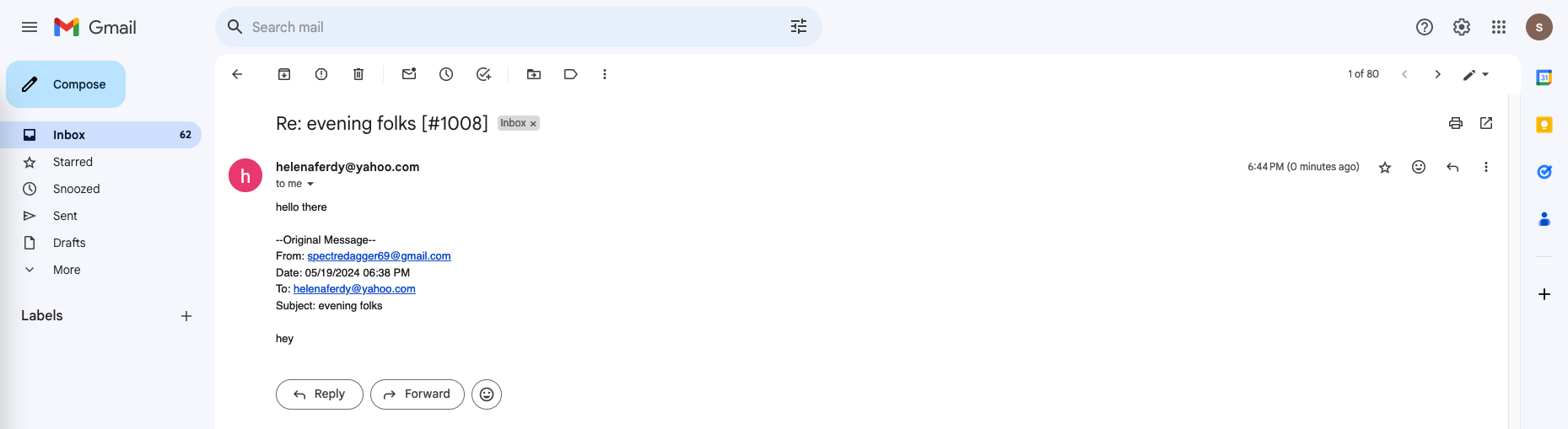 And we can see the reply has gone through to the original email sender