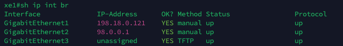 This second method will use IP SLA to do a ping check from XE1 to XE2, if the ping returns timeout, EEM will remove the configuration on int g2 and configure the int g3.