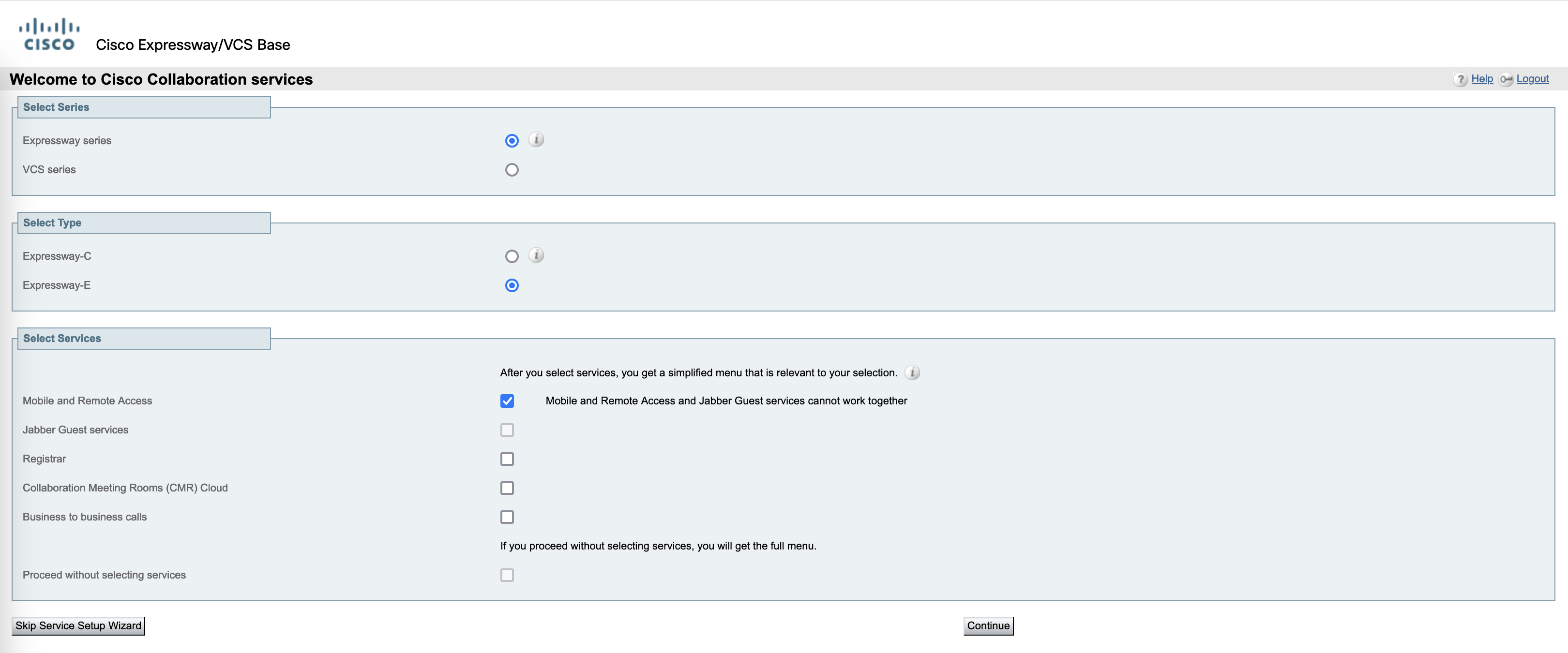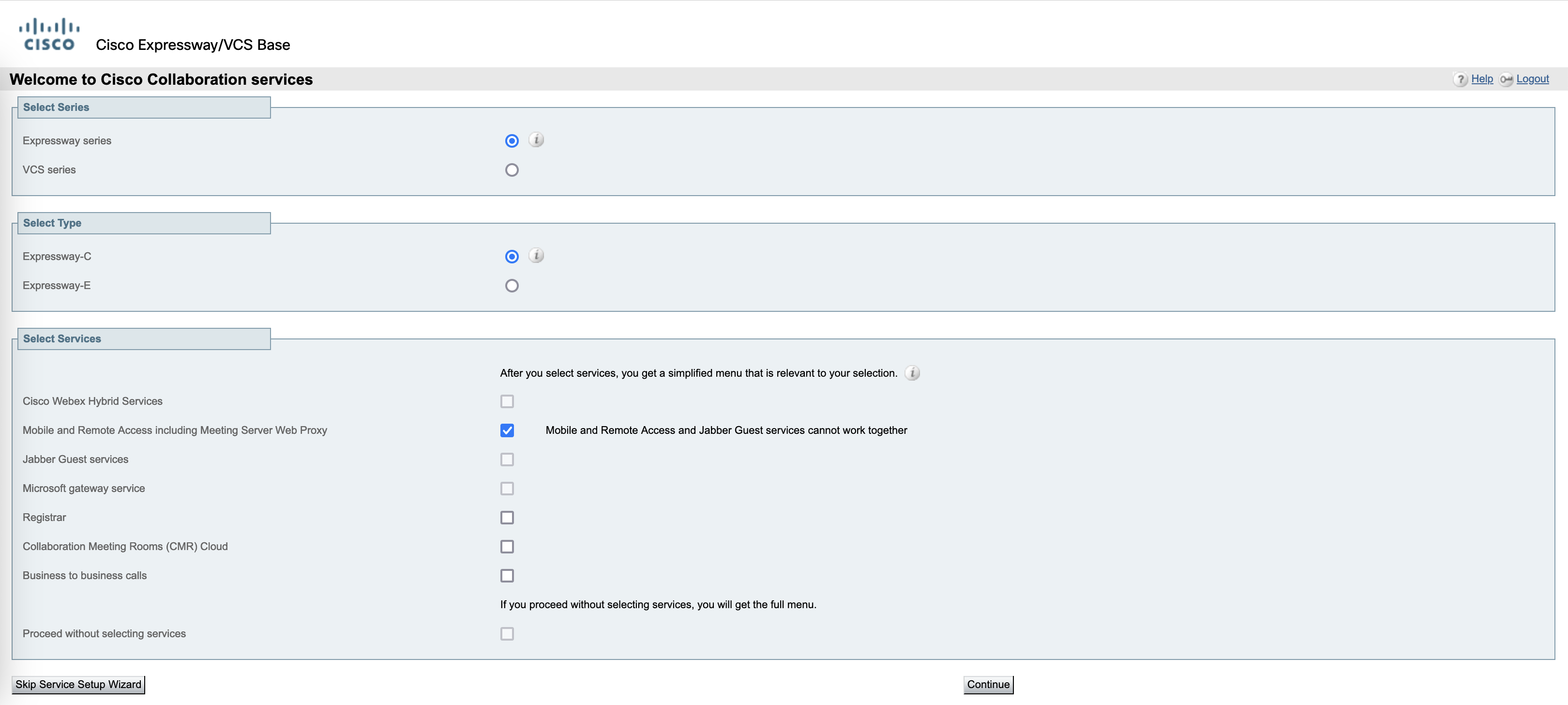 On the Expressway Core VM, select Expressway-C and for the service select MRA