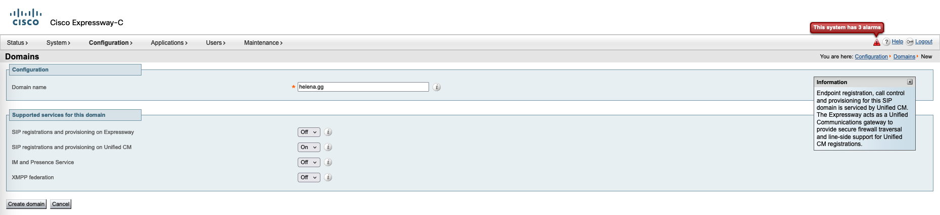 On Core, go to Configuration » Domains, input the domain name the supported services