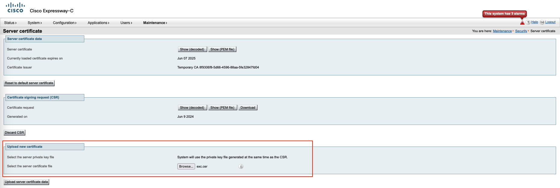 Back to Server certificate, finish the CSR by uploading the signed certificate