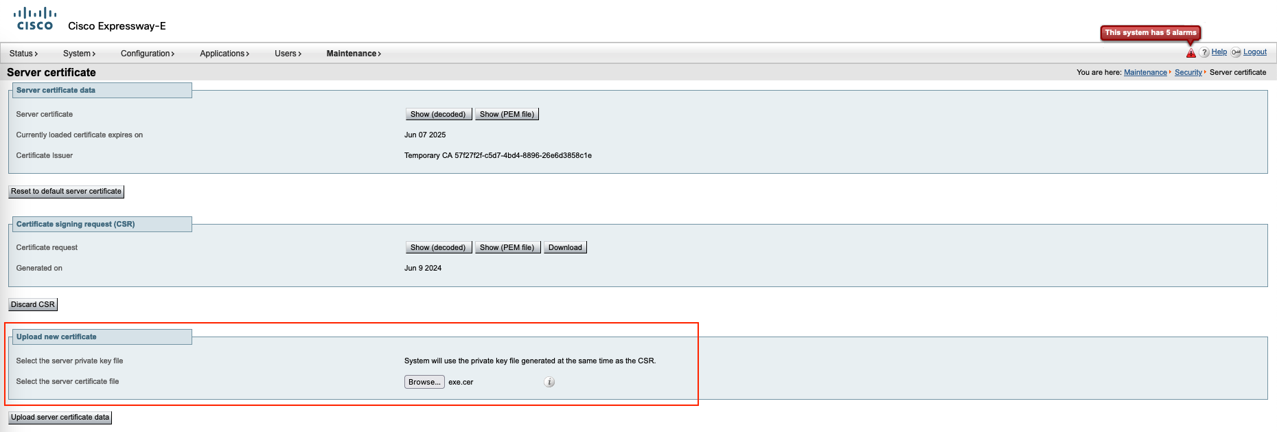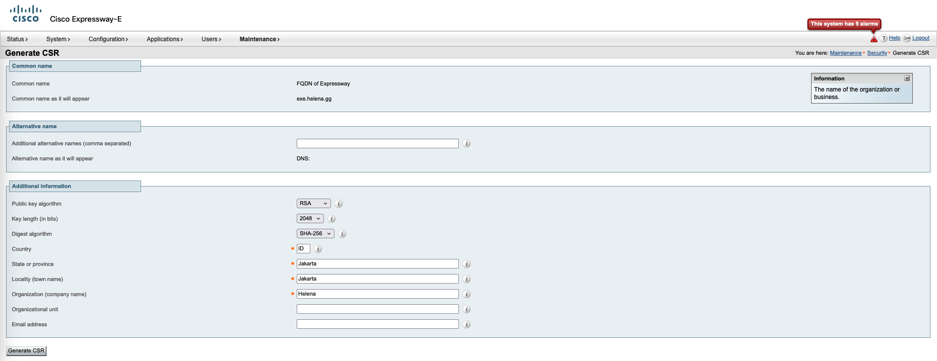 On Core, go to Maintenance » Security » Server certificate, select generate CSR