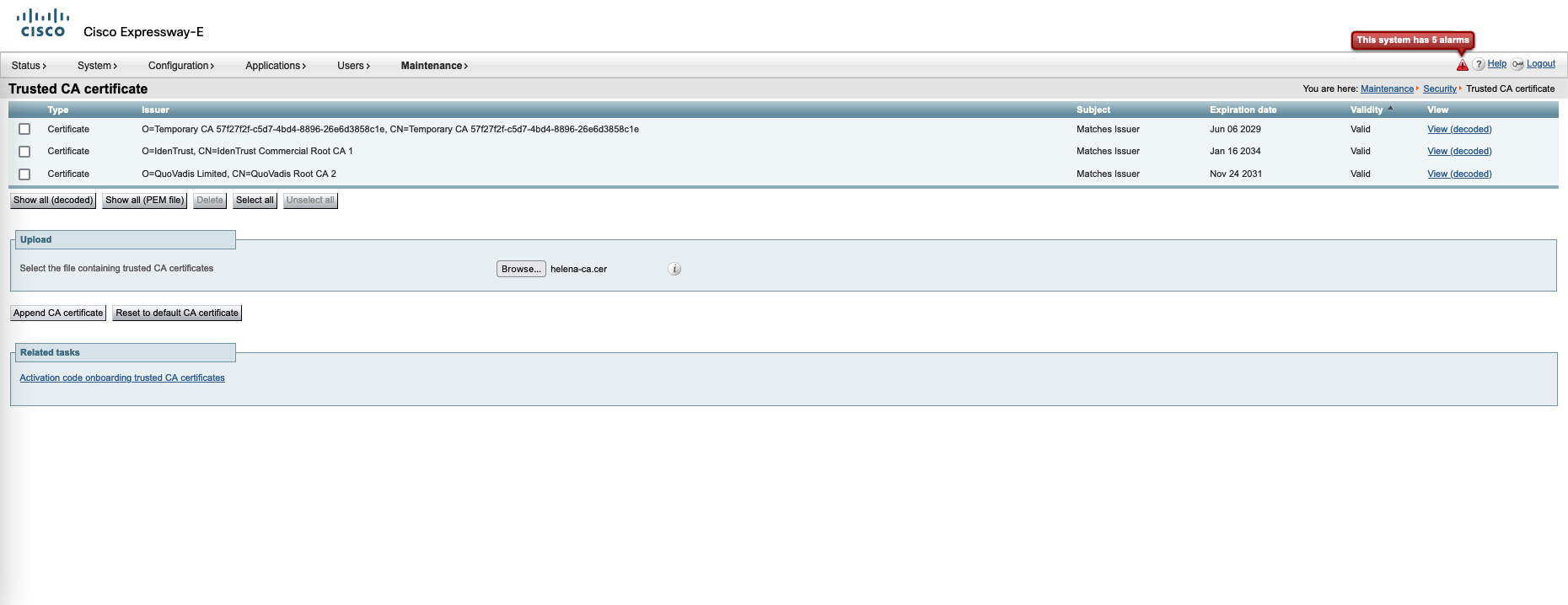 Next add the Root CA Certificate on to the Trusted CA Certificates
