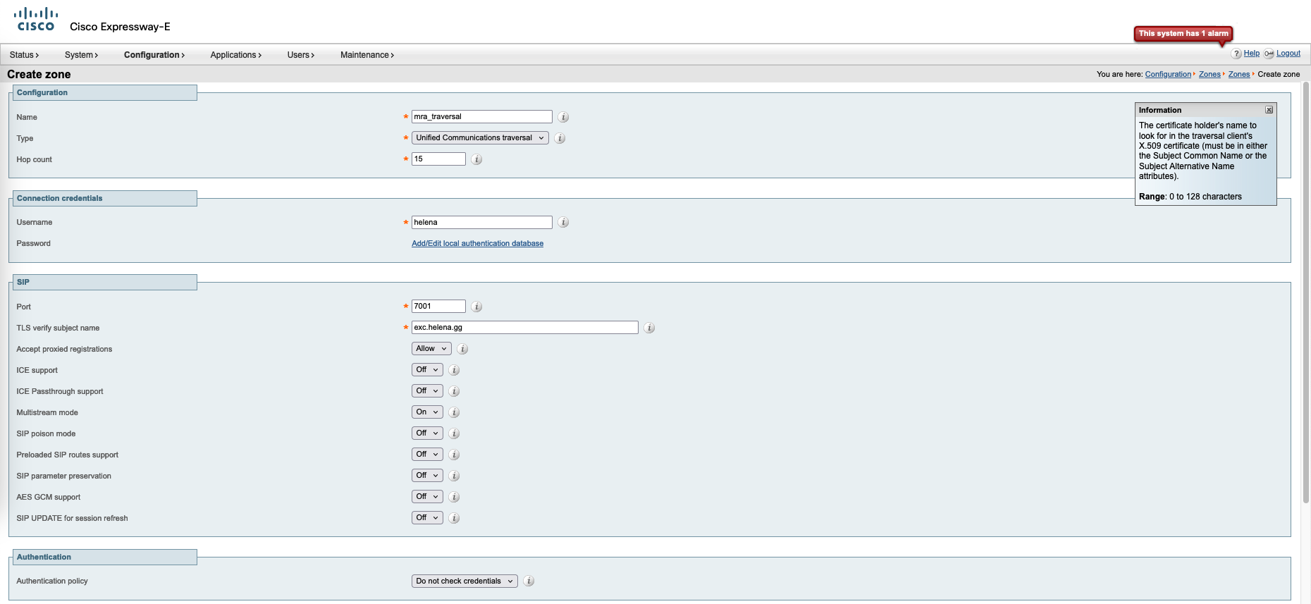 On the Edge, go to Configuration » Zones, create the traversal zone pointing to the Core