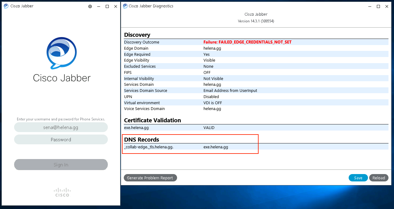 Now on the internet, when we try to hit the helena.gg domain, the endpoint will use the _collab-edge DNS Srv Record to locate the CUCM Service