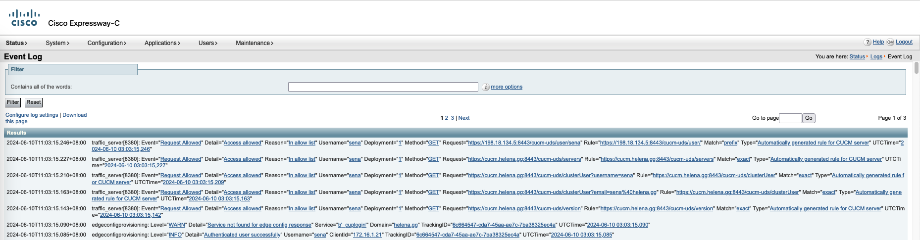 On Maintenance » Logging, we can see the the logs of the users authenticating to CUCM through Expressway