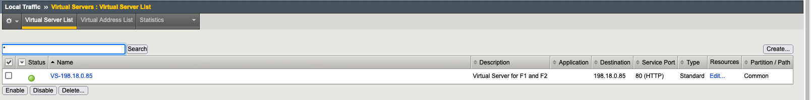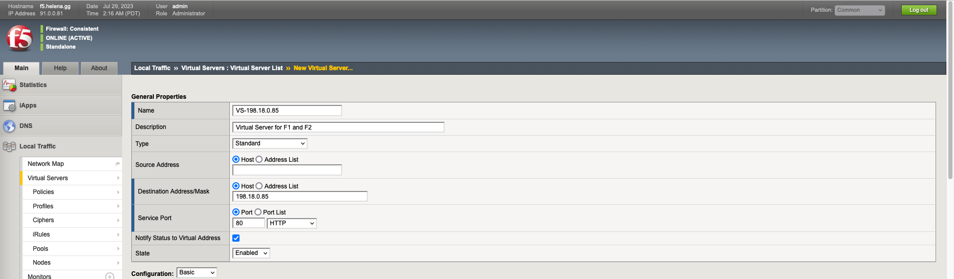 To test it, simply access the Virtual Server’s web service on port 80, which the ip is 198.18.0.85